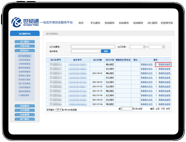 在“报关信息查询”界面,点击:查看物流信息