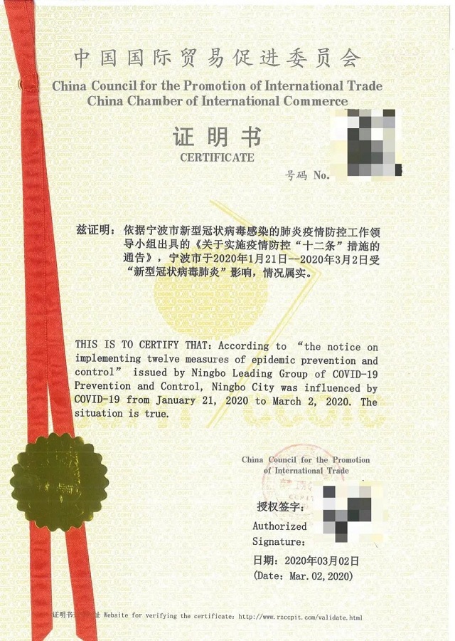 关于中国贸促会“新型冠状病毒肺炎疫情不可抗力事实性证明”